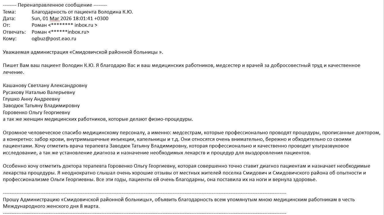 В ОГБУЗ «Смидовичская РБ» организованно проведение: